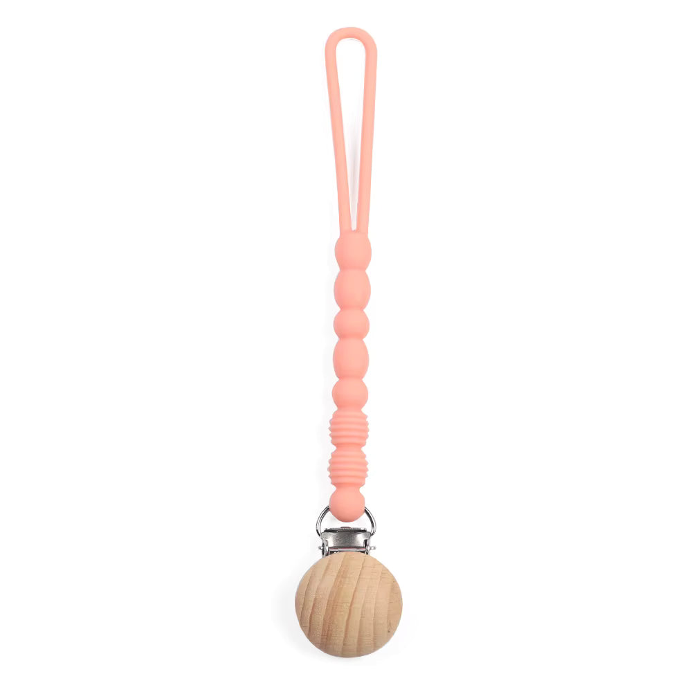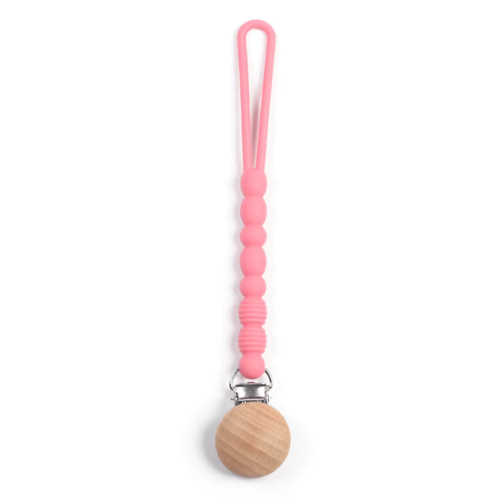 Bandið er úr mjúku og endingargóðu sílikoni sem er öruggt fyrir börn. Það er auðvelt að festa á snuð og hægt að þvo það með volgu vatni eða sápu.